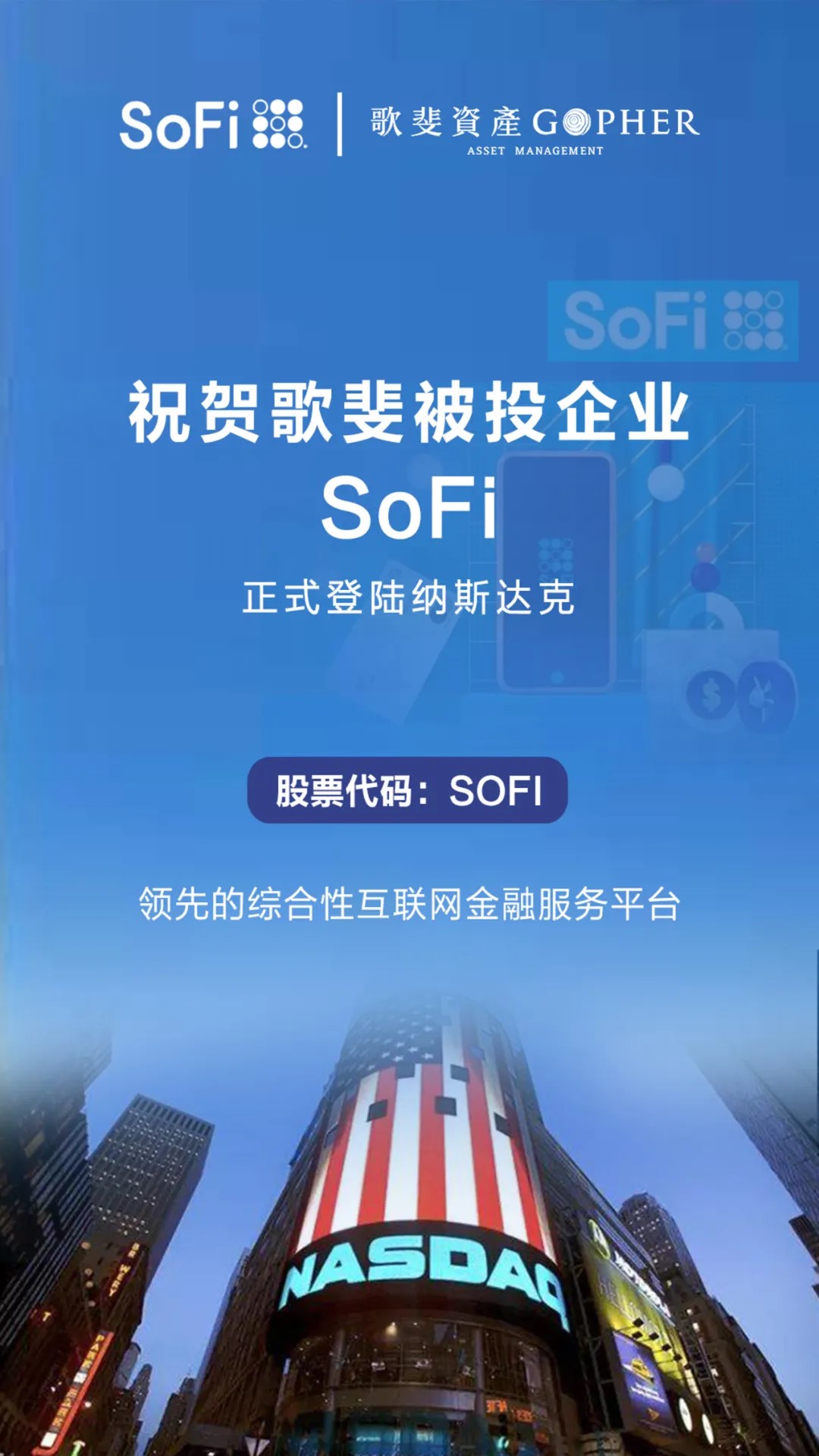 北京時(shí)間6月2日凌晨,領(lǐng)先的綜合性互聯(lián)網(wǎng)金融服務(wù)公司SoFi正式登陸納斯達(dá)克,股票代碼SOFI。歌斐資產(chǎn)于2018年1月正式投資SoFi,是公司基于自身在金融行業(yè)的生態(tài)建設(shè)、重點(diǎn)布局的美元直投項(xiàng)目。
