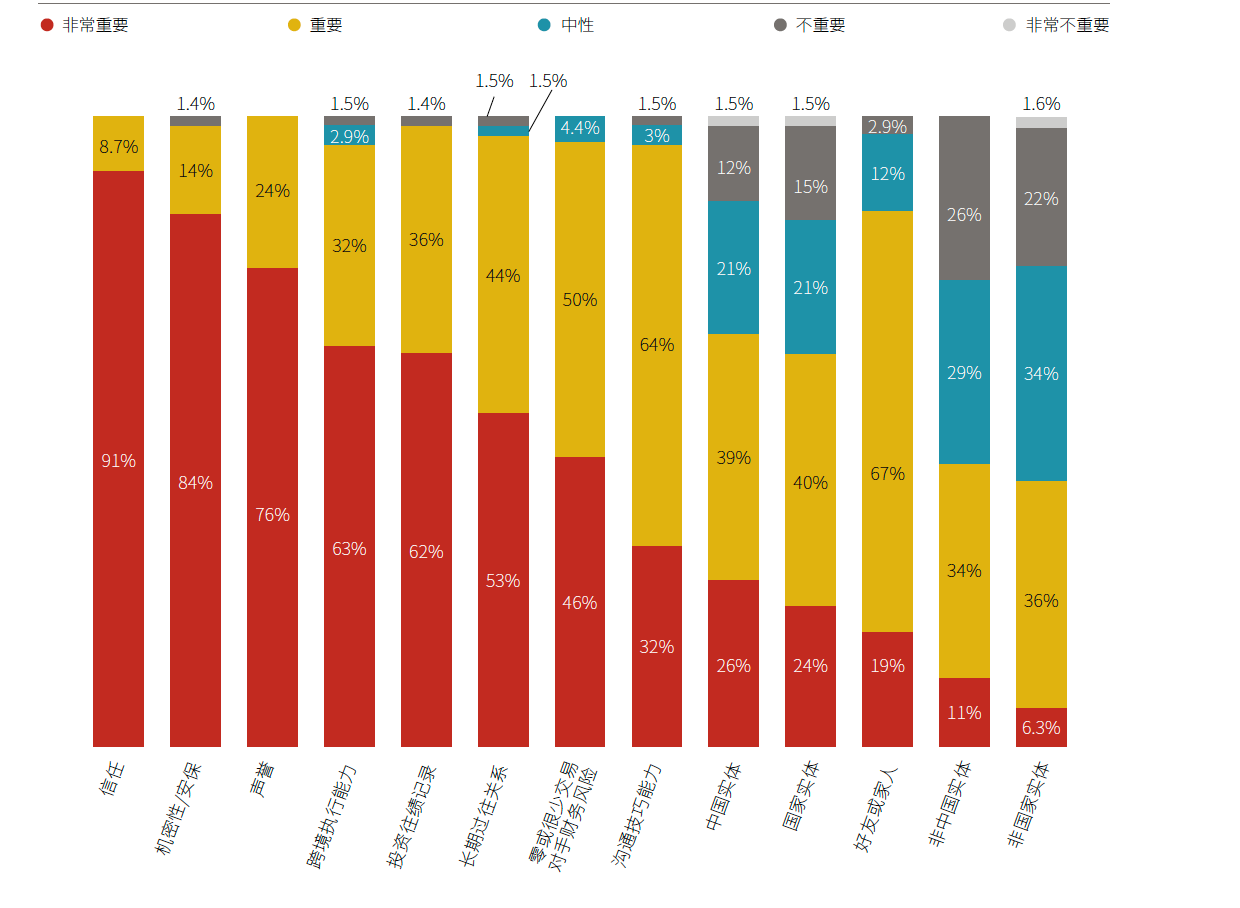 CIO篩選外包服務商的時候信任最重要,最看重的是信任、品牌 、保密性,其后才是優(yōu)秀的投資業(yè)績。選擇金融服務提供商時,在各種標準對選擇金融服務提供商的重要性方面,家族表示信任、機密性 、安全和聲譽是最關鍵的考慮因素,分別有91%、84%和76%的家族表示這些因素非常重要。