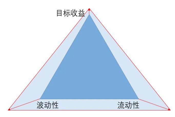 總體來說,一項(xiàng)投資的預(yù)期目標(biāo)收益越高,它對波動和流動性的約束越大,即必須犧牲部分流動性需求、承擔(dān)更高的波動水平。制定適當(dāng)?shù)念A(yù)期收益目標(biāo),選擇均衡的策略和組合,可以在收益性、安全性、流動性之間獲得一個(gè)相對的平衡。