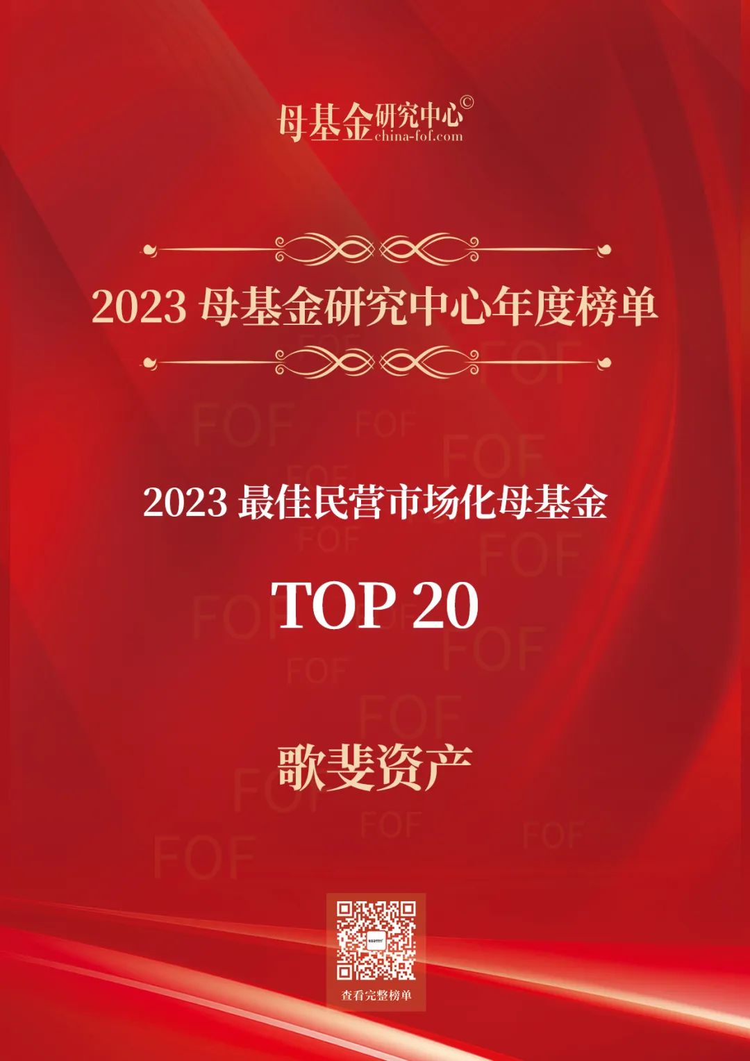 歌斐資產憑借出色表現獲得“2023最佳民營市場化母基金TOP20”。